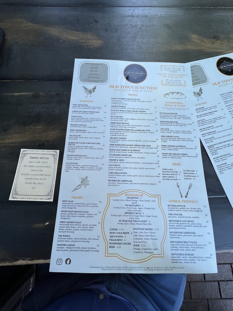 The Old Town Junction in Santa Clarita, CA offers a diverse menu with vegan and vegetarian options, making it a great spot for all diners. The restaurant provides a cozy and intimate atmosphere with friendly staff and a welcoming vibe. With a range of dishes to choose from, including lamb chops, tomahawk steak, and duck breast, every palate is catered to. The extensive drink menu, including mocktails and specialty cocktails, complements the flavorful food options perfectly. The restaurant also offers a variety of amenities such as outdoor seating and free Wi-Fi, ensuring a comfortable dining experience. Whether it's for brunch or dinner, The Old Town Junction promises a memorable and satisfying meal for all visitors.